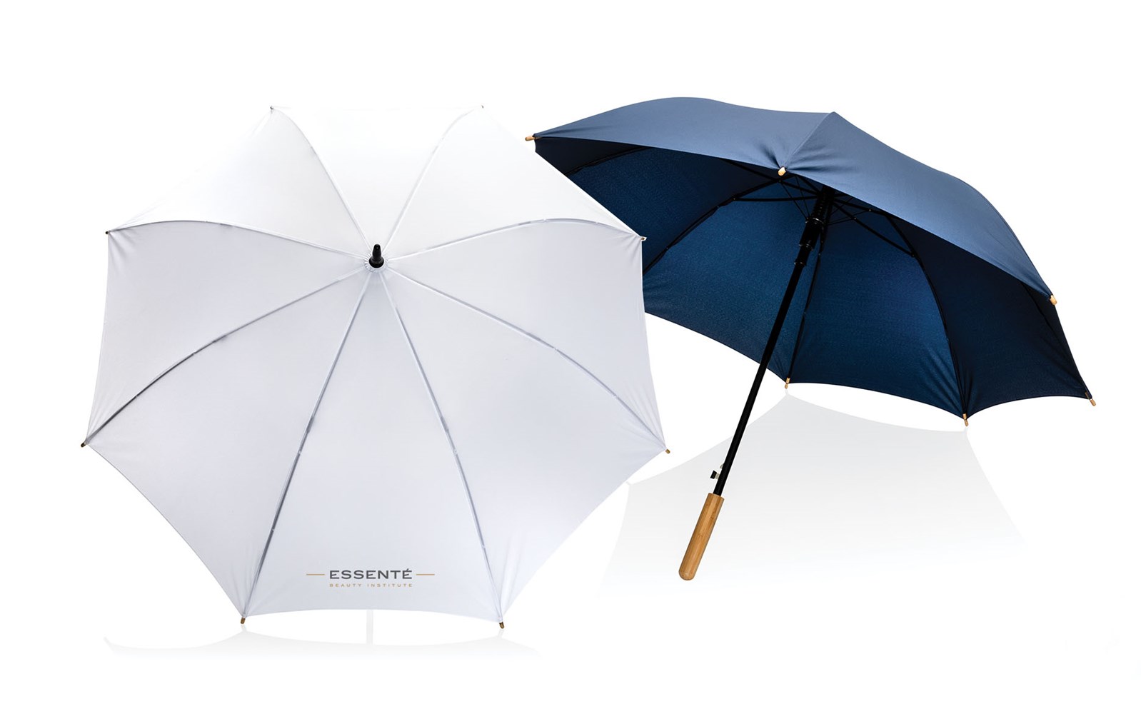 Deštník s logem Essenté vyrobený z ponžé z recyklovaného materiálu. Nabízí moderní 23" provedení, automatické otevírání, kovovou konstrukci, žebra ze skelných vláken, madlo z bambusu. Na výrobu bylo využito 8,2 500ml PET lahví a bylo uspořeno 4,9 litrů vody.
