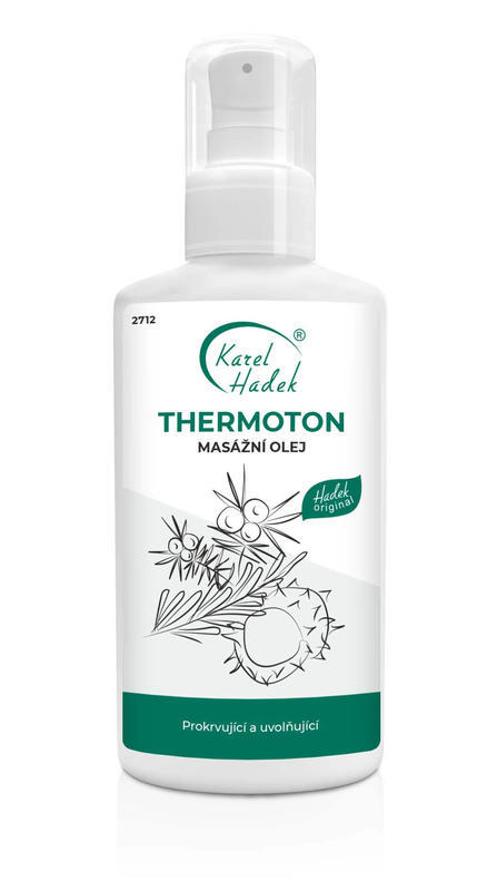 Masážní olej, který díky obsaženým složkám může mít jemné prokrvující, protizánětlivé a protibolestivé účinky. Těší se velké oblibě u lidí trpících artritidou. Schopnost podpory zlepšené tvorby kloubního maziva a protibolestivé účinky dovedou ocenit i postižení artrózou. Jeho účinky využijí také ti, které trápí problém zkracováníšlach. Masáž je v tomto případě nutno provádět alespoň 2× denně. Je evidentní, že masážní olej THERMOTON je mnohoúčelový přípravek s vynikajícími terapeutickými vlastnostmi, které jsou dané díky použitým éterickým olejům. Nejednou jsem již od masérů slyšel, že lepší přípravek ještě v rukou neměli.